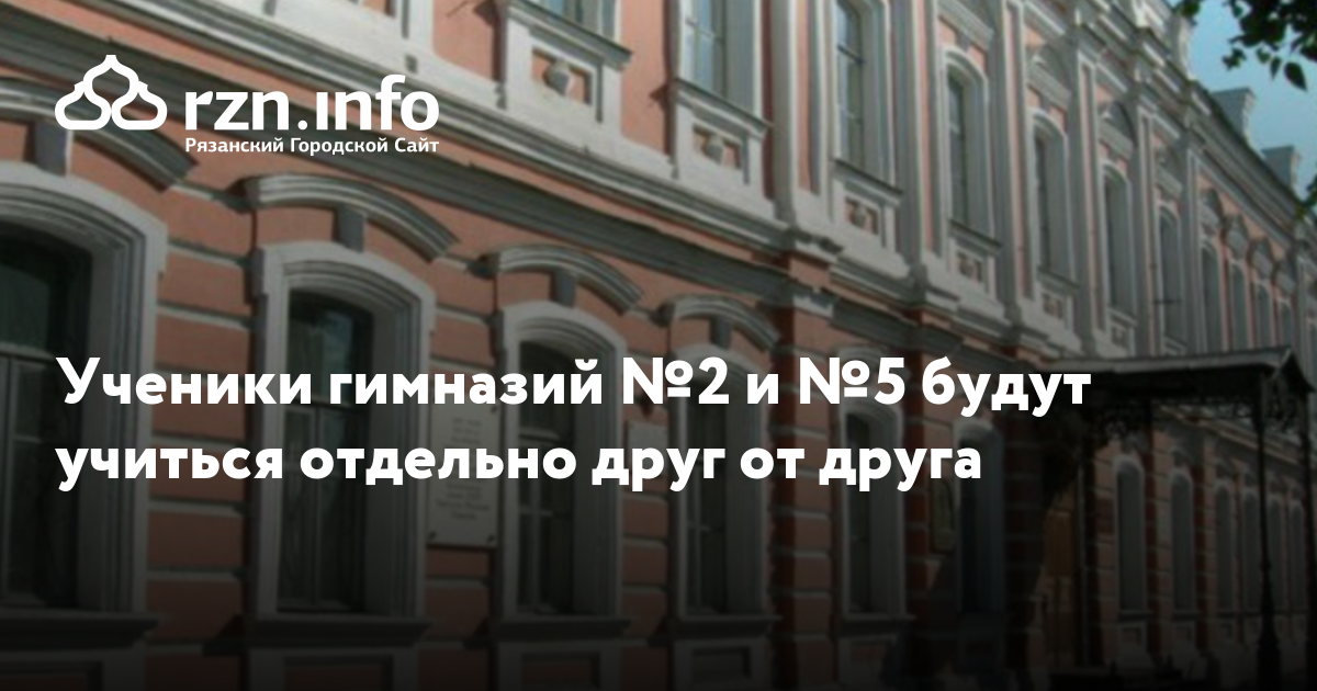 Ученики гимназий №2 и №5 будут учиться отдельно друг от друга. Об этом РЗН. инфо сообщили в рязанской администрации.