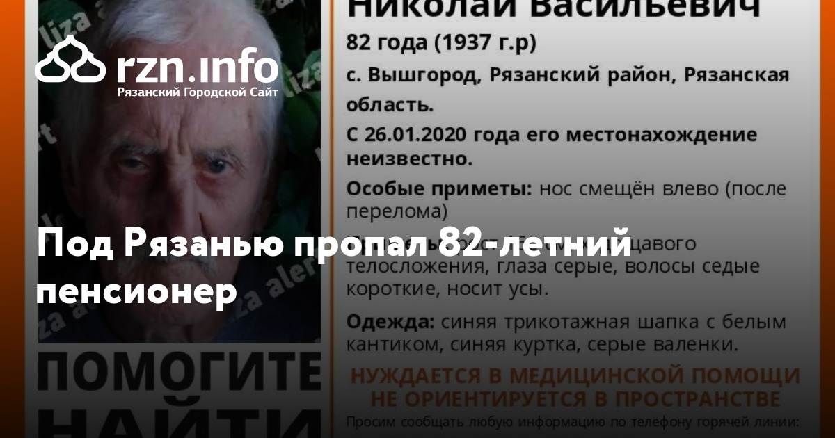 В селе Вышгород Рязанского района пропал 82-летний Николай Карпушин. Об этом сообщила группа поисково-спасательного отряда «».