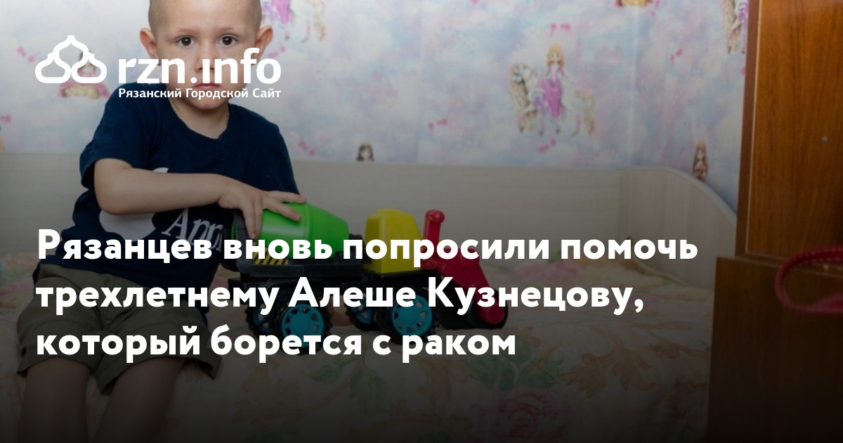 Рязанцев вновь попросили помочь трехлетнему Алеше Кузнецову, больному раком в последней стадии. Об этом сообщили в официальной группе помощи ребенку «ВКонтакте».