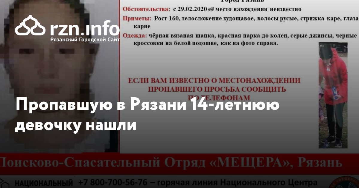Пропавшую в Рязани 14-летнюю девочку нашли