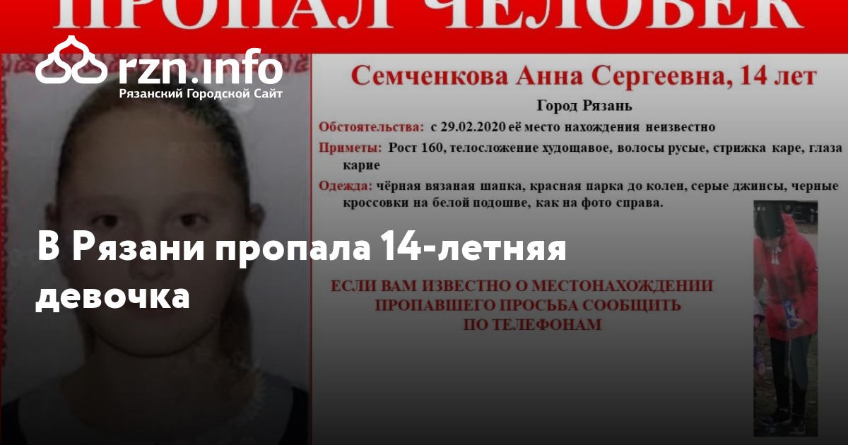 В Рязани пропала 14-летняя Анна Семченкова. Об этом сообщил поисково-спасательный отряд «Мещера».