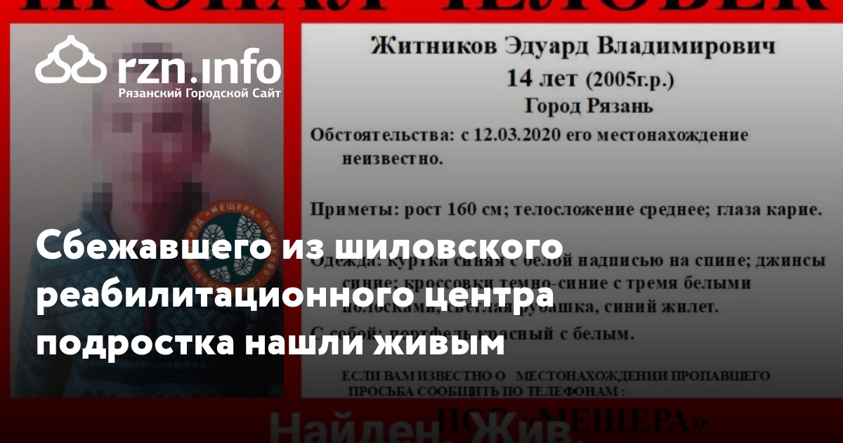 14-летнего Эдуарда Житникова, сбежавшего из шиловского реабилитационного центра, нашли живым. Об этом сообщили в группе поисково-спасательного отряда «Мещера» «ВКонтакте».