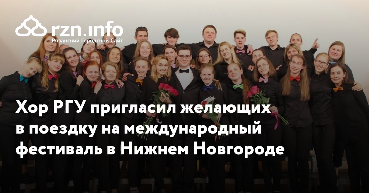 Хор Рязанского государственного университета имени Сергея Есенина пригласил всех желающих в поездку в Нижний Новгород на 17-й международный фестиваль «Молодые голоса-2020». Об этом сообщила группа хора «ВКонтакте».