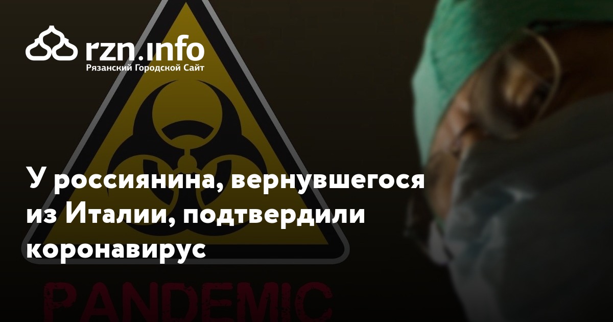 У россиянина, вернувшегося из Италии, подтвердили коронавирус