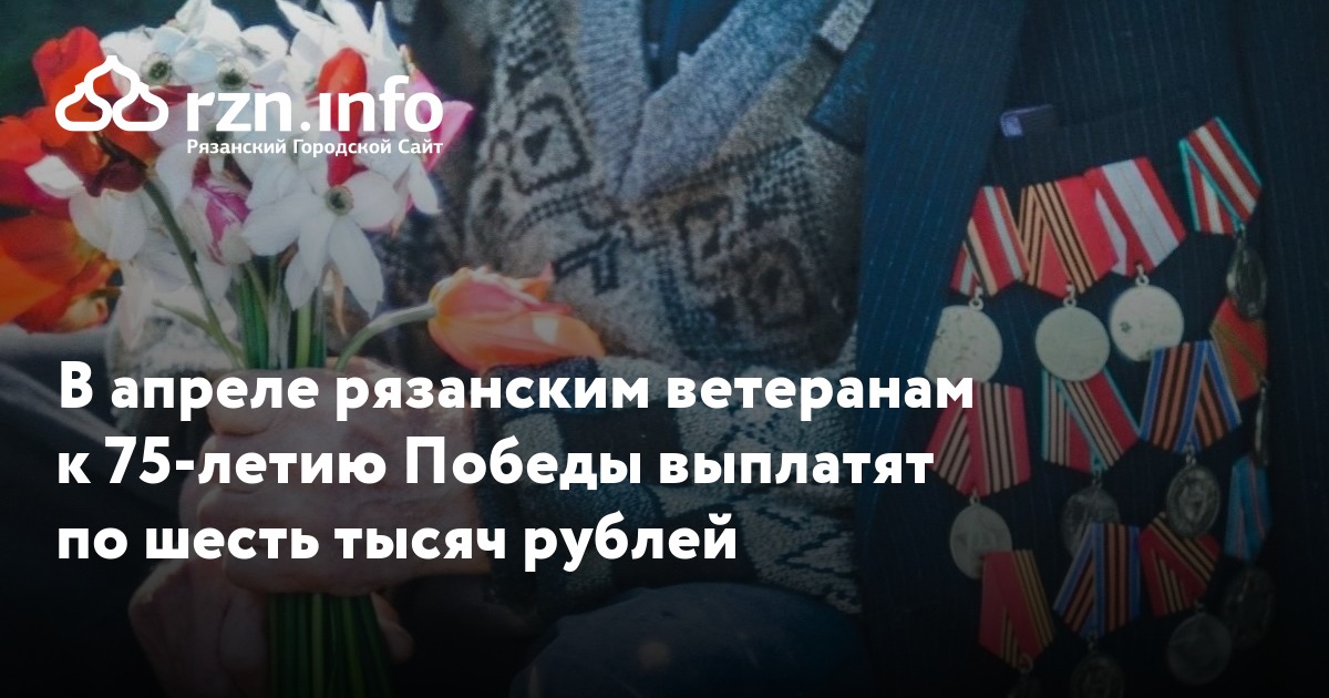 В апреле рязанским ветеранам к 75-летию Победы выплатят по шесть тысяч рублей. Соответсвующее постановление подписал губернатор Николай Любимов в понедельник, 23 марта, сообщил сайт минтруда.
