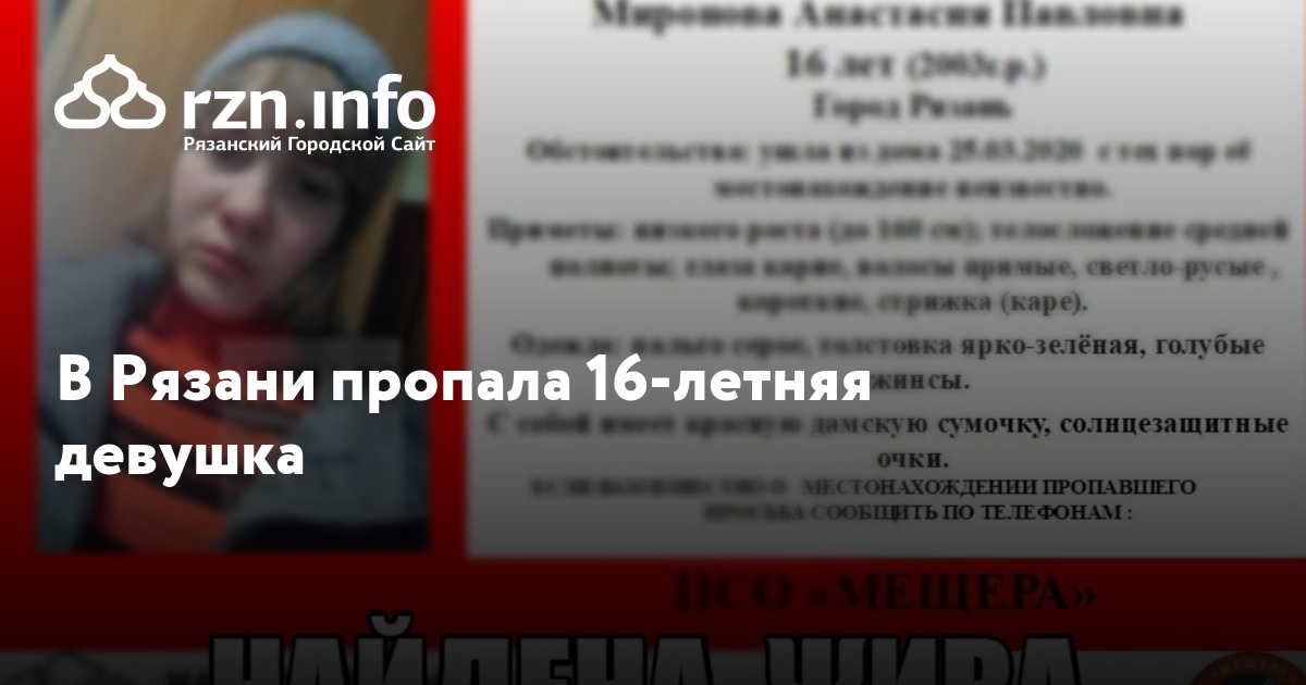 В Рязани пропала 16-летняя Анастасия Миронова. Об этом в четверг, 26 марта, сообщили в .