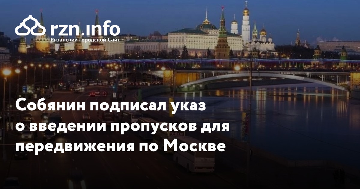 Собянин подписал указ о введении пропусков для передвижения по Москве
