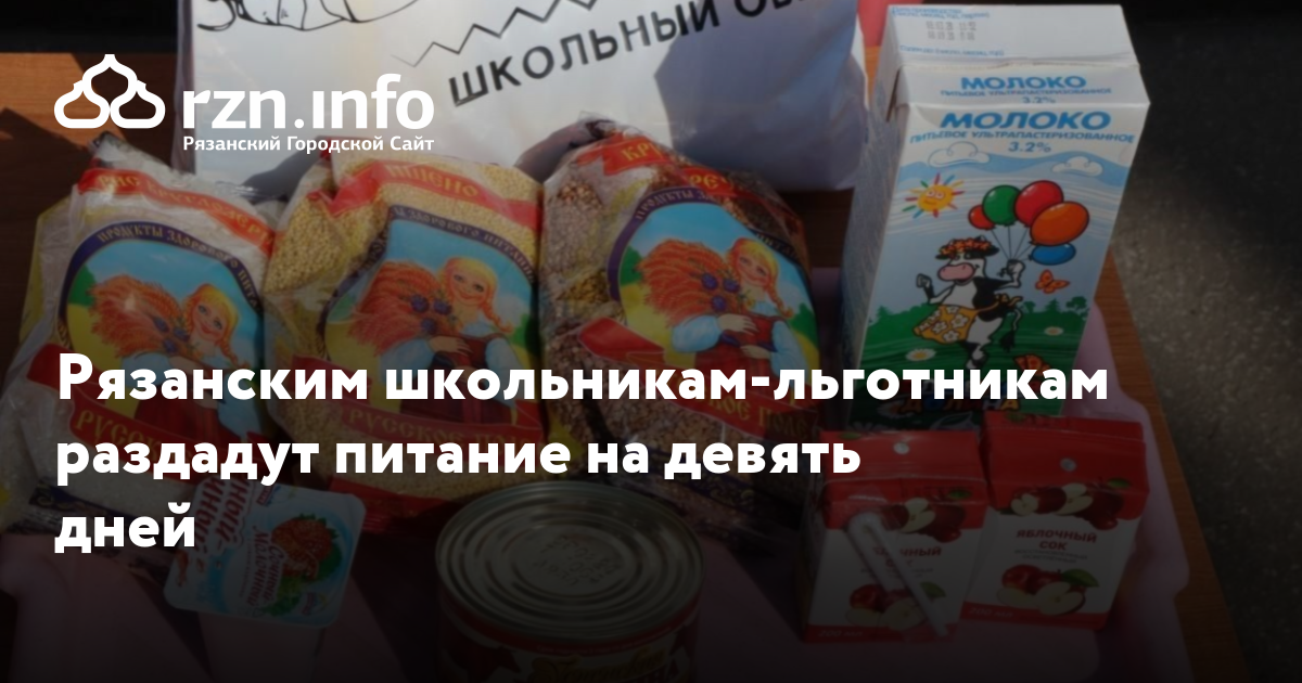 Рязанским школьникам-льготникам раздадут питание на девять дней