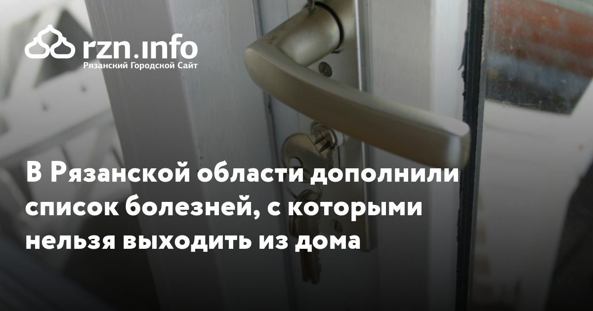 В Рязанской области дополнили список болезней, с которыми нельзя выходить из дома