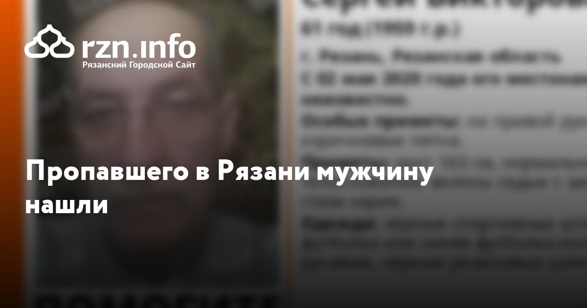 Пропавшего в Рязани Сергея Мачехина нашли живым. Об этом сообщили в группе «».