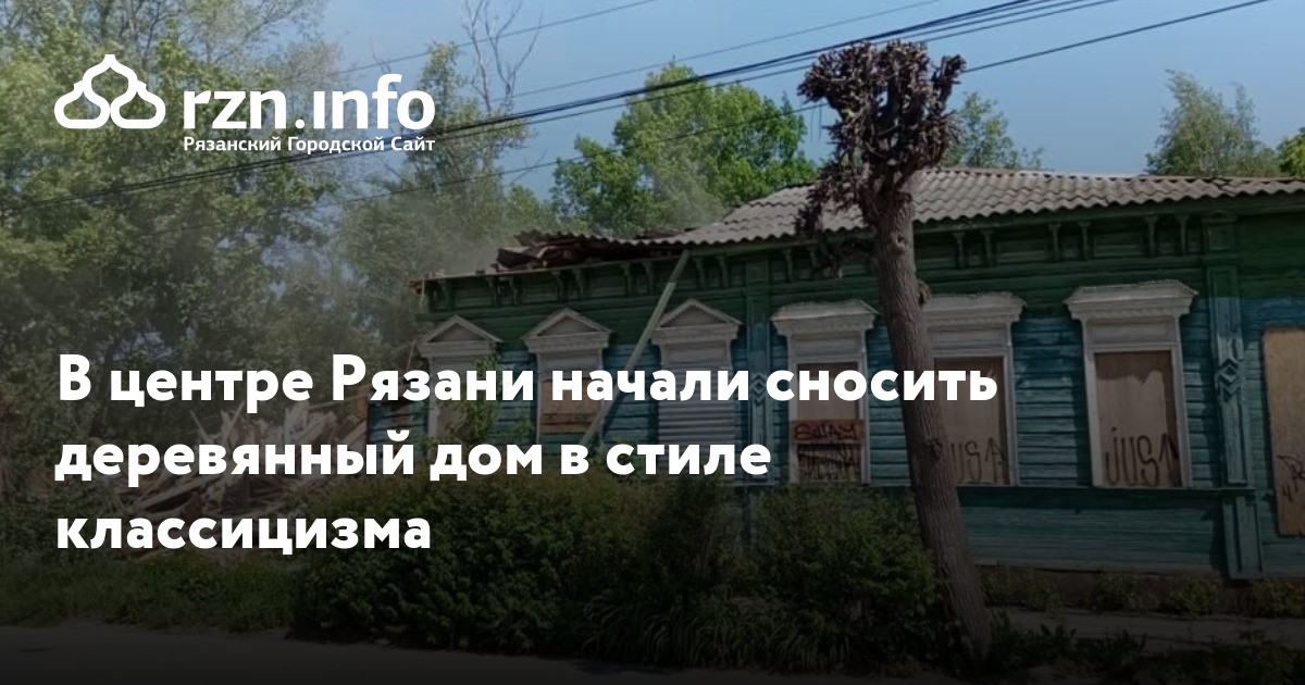В субботу, 30 мая, в центре Рязани начали сносить деревянный дом в стиле классицизма. Фотографии в группе «Настоящая Рязань».