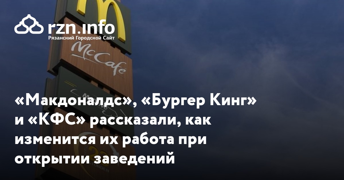 Сеть ресторанов быстрого питания McDonald`s сообщает, что будет открывать свои заведения с повышенными мерами безопасности после снятия ограничений из-за коронавируса. Также KFC и Burger King изменили свои правила из-за требований Роспотребнадзора, пишет газета «».