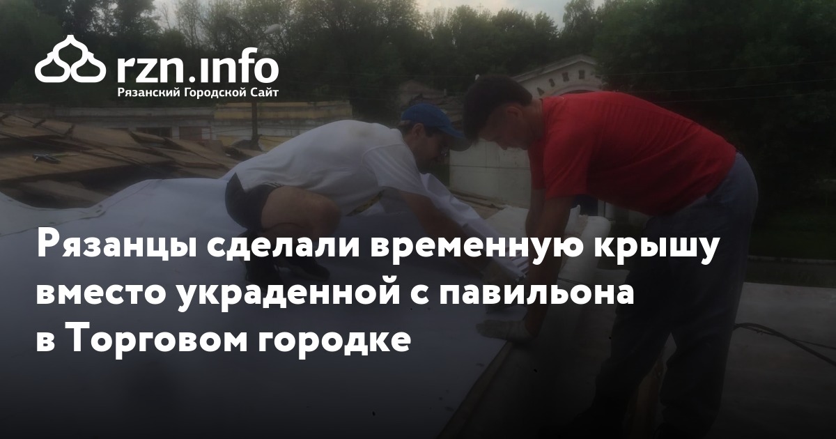 В субботу, 20 июня, рязанцы сделали временную крышу вместо украденной с павильона в Торговом городке. Добровольцы , что настелили на здание линолеум и баннерную ткань. Они успели сделать это до дождя, который начался вечером.