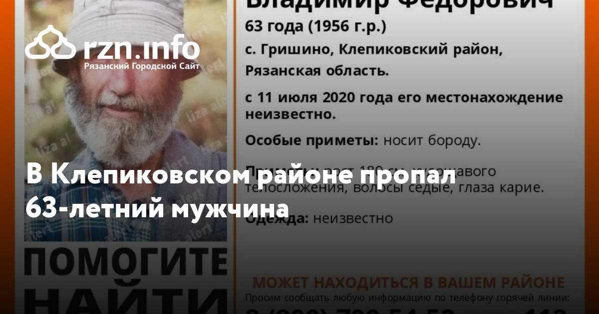 В селе Гришино Клепиковского района пропал 63-летний Владимир Крюков. Об этом сообщила группа поисково-спасательного отряда «Лиза Алерт Рязань».