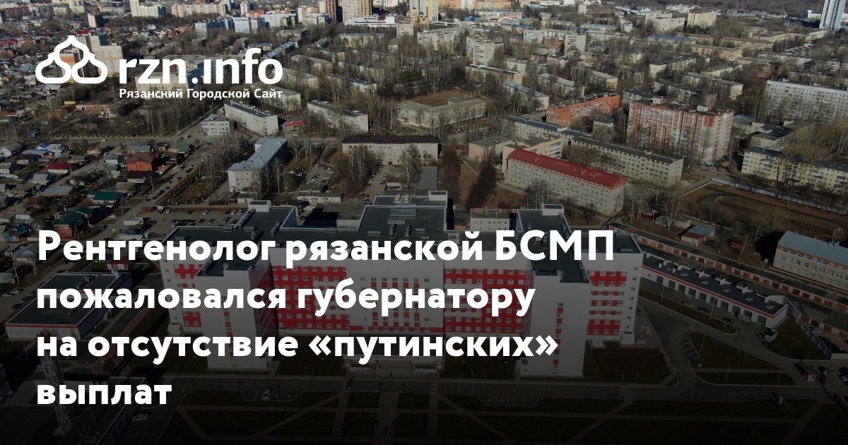 Во вторник, 14 июля, сотрудник рентгенологического отделения рязанской БСМП Никита Фирсов пожаловался губернатору Николаю Любимову на отсутствие «путинских» выплат. По его словам, деньги получили те, кто не работает в «грязной» зоне постоянно, а непосредственно работающие с больными COVID-19 дежурные врачи и рентгенологи c апреля ждут помощи.