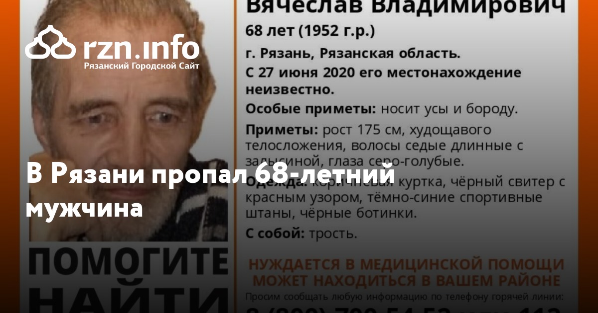В Рязани пропал 68-летний Вячеслав Феоктистов. Об этом в четверг, 2 июля, сообщили волонтеры «».