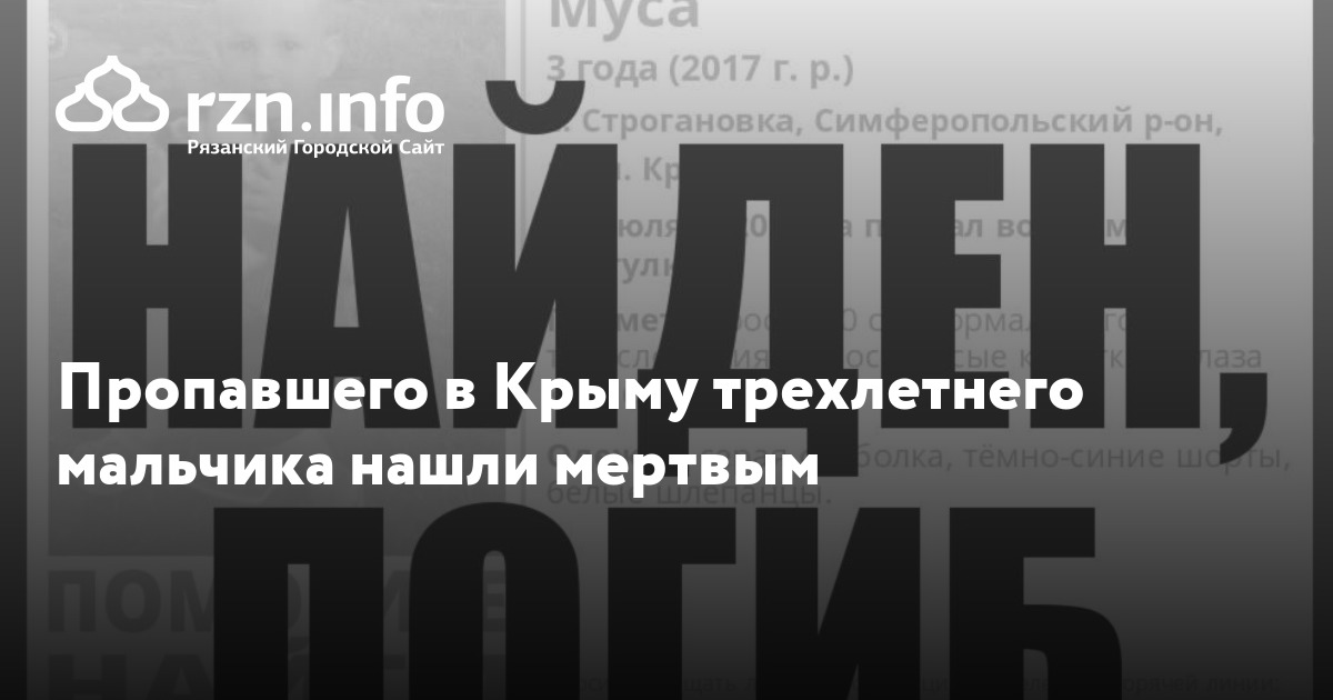 Пропавшего в Крыму трехлетнего мальчика нашли мертвым