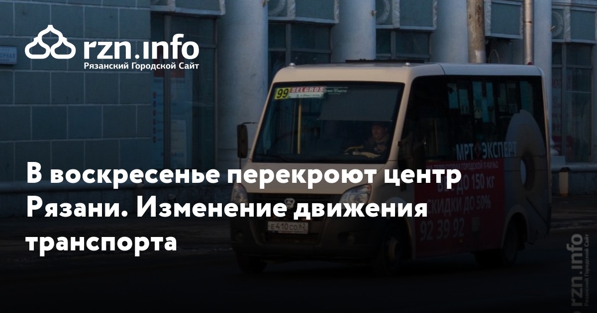 В воскресенье перекроют центр Рязани. Изменение движения транспорта