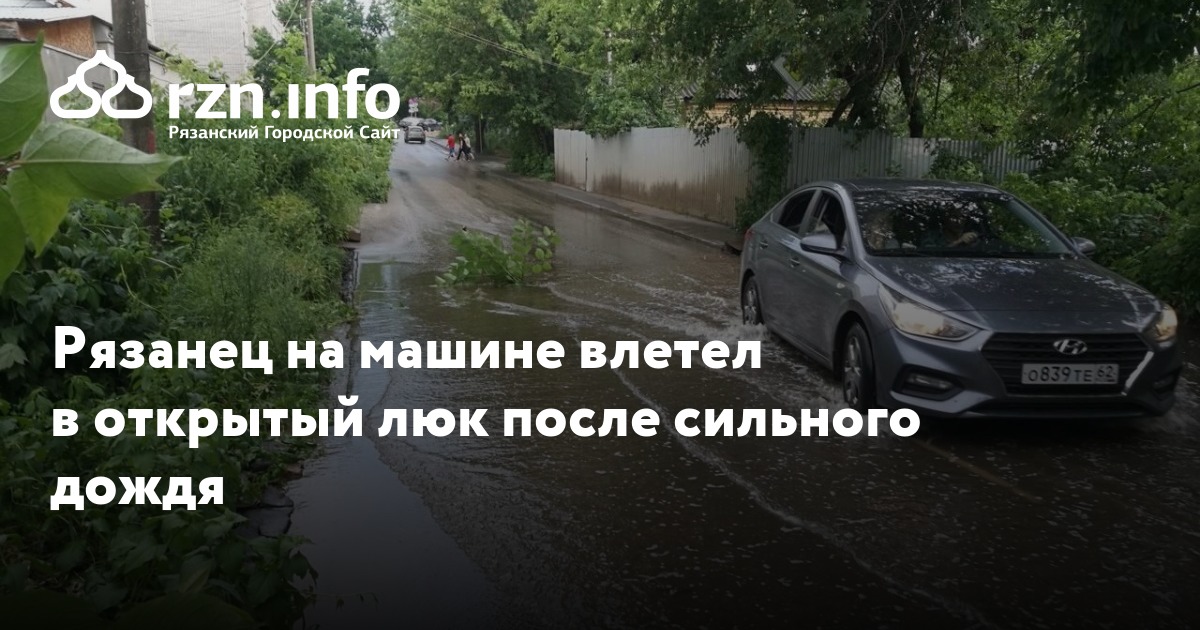 Рязанец на машине влетел в открытый люк после сильного дождя
