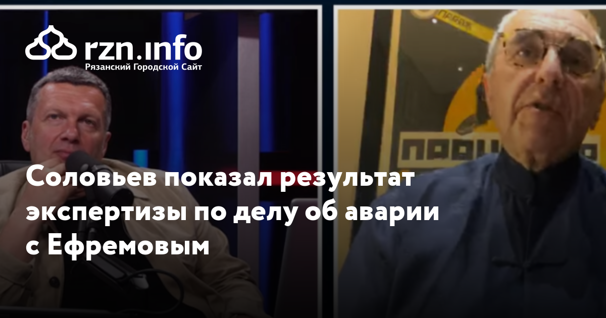 Владимир Соловьев показал результат экспертизы по делу об аварии с Михаилом Ефремовымв эфире передачи «». Телеведущий рассказал, что получил итоги экспертизы МВД, согласно которым на водительской подушке безопасности машины артиста сохранились следы ДНК Ефремова.