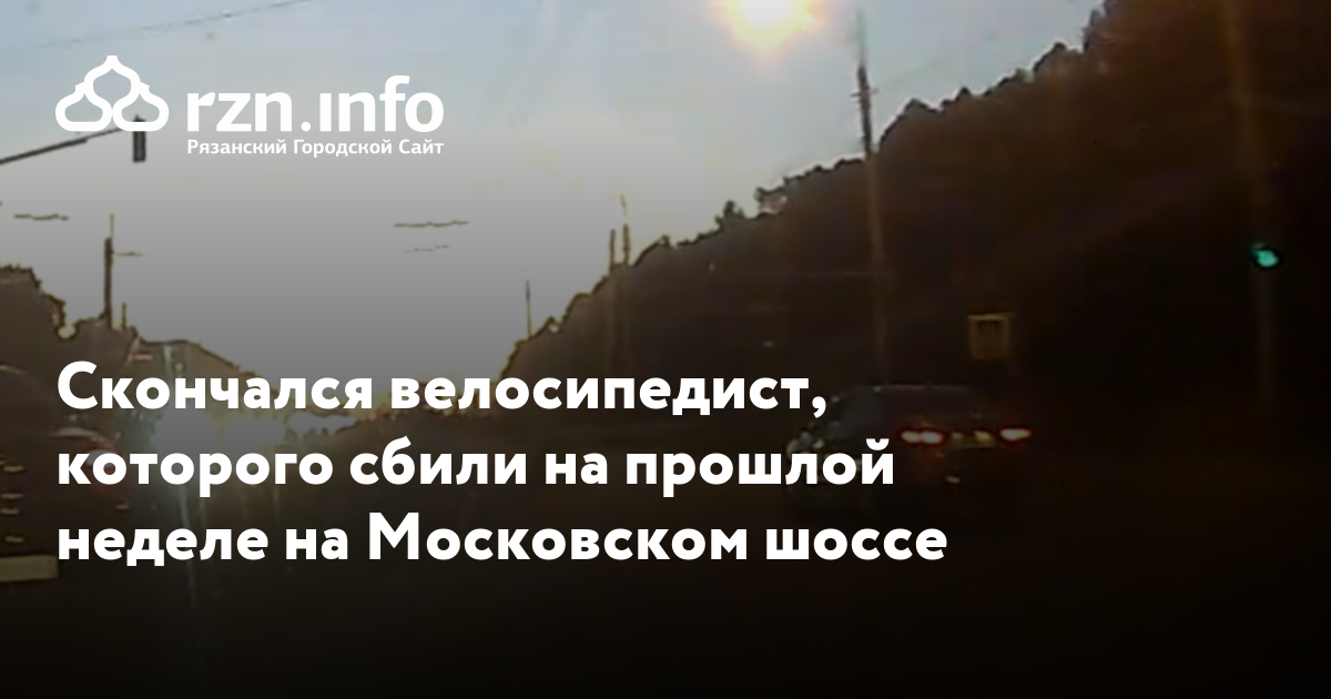 Скончался велосипедист, которого сбили 7 августа на Московском шоссе. Об этом сообщили в пресс-службе регионального управления МВД.