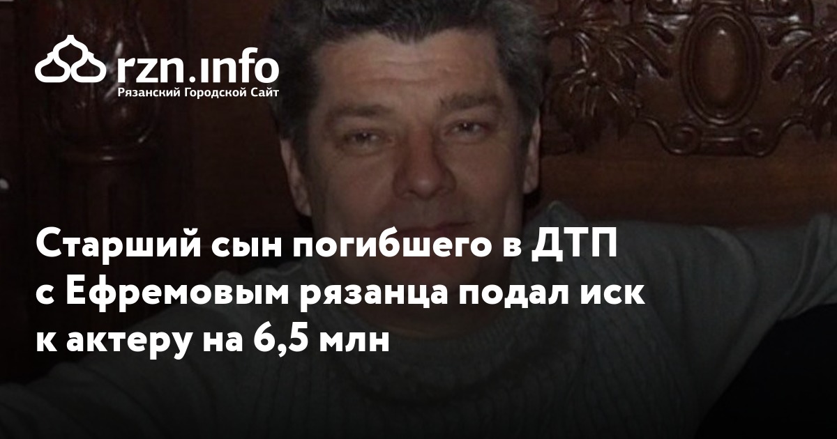 Виталий Захаров, старший сын рязанца Сергея Захарова, погибшего в ДТП с Михаилом Ефремовым, подал иск к актеру на 6,5 млн рублей. Об этом передает .