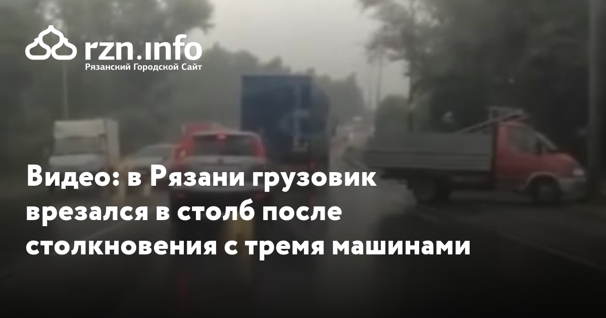 Видео: в Рязани грузовик врезался в столб после столкновения с тремя машинами