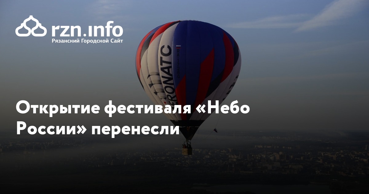 В Рязани из-за неблагоприятной погоды перенесли открытие фестиваля воздухоплавания «Небо России» с 13 августа на утро 15 августа. Об этом сообщили в фестиваля «ВКонтакте».