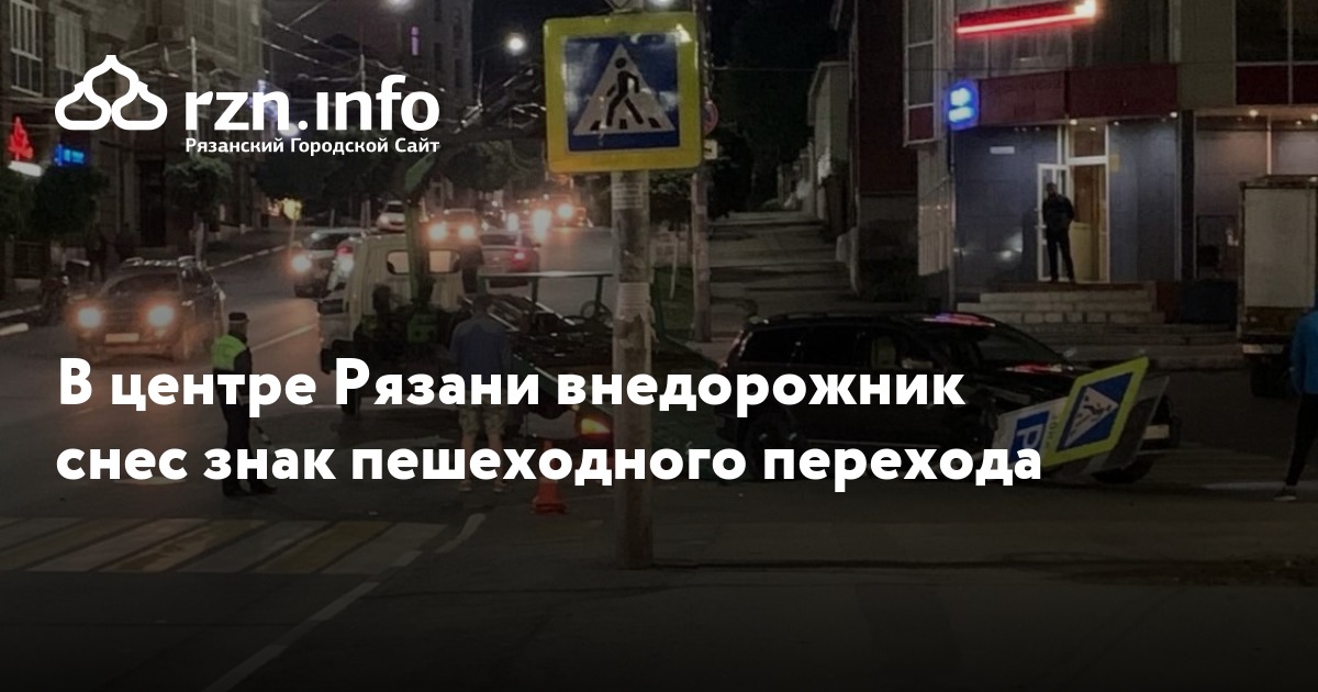 Вечером в пятницу, 14 августа, в центре Рязани внедорожник снес знак пешеходного перехода. ДТП произошло на перекрестке улиц Свободы и Подгорной. Фотографию с места аварии опубликовали во «ВКонтакте».