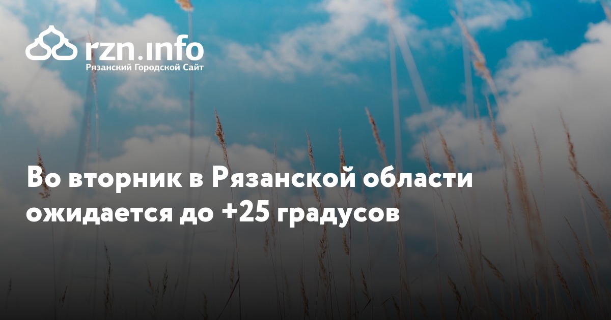 Во вторник, 17 августа, в Рязанской области ожидается до +25 градусов.