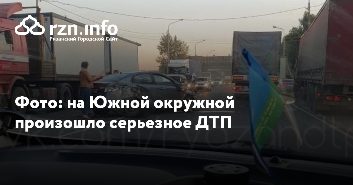 Вечером во вторник, на Южной окружной столкнулись Kia Rio и фура. Фото с места происшествия появилось в группе «ДТП Аварии Рязань».