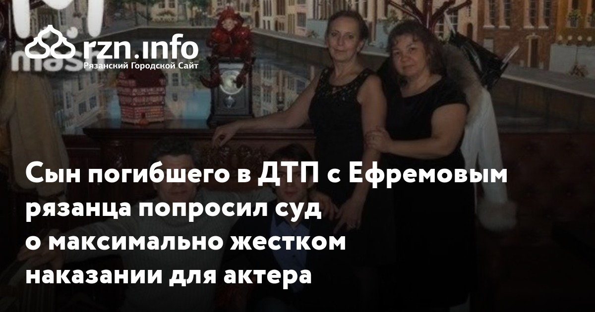 Валерий Захаров, сын рязанца Сергея Захарова, погибшего в ДТП с Михаилом Ефремовым, попросил суд о максимально жестком наказании для актера. Об этом передает .