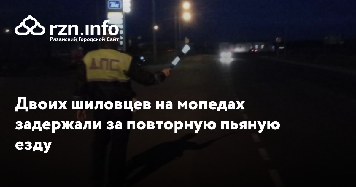 В Шиловском районе двоих водителей мопедов задержали за повторную пьяную езду. Об этом сообщила пресс-служба рязанского УМВД в среду, 19 августа.