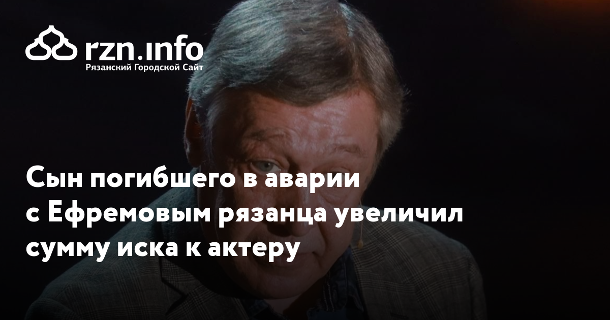Сын погибшего в аварии с Михаилом Ефремовым рязанца Сергея Захарова увеличил сумму иска к актеру. Виталий Захаров хочет получить от артиста семь с половиной миллионов рублей — на миллион больше, чем накануне. Об этом адвокат мужчины Татьяна Головкина сообщила «» в четверг, 20 августа.