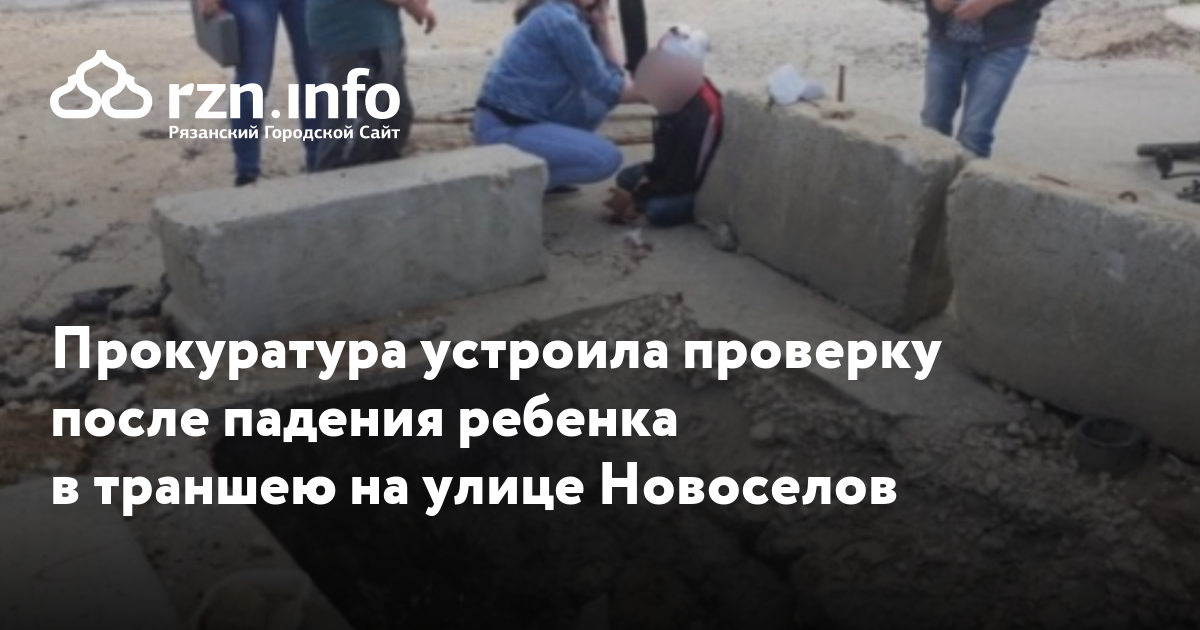 Рязанская прокуратура устроила проверку после падения ребенка в траншею. Об этом в понедельник, 24 августа, сообщила пресс-служба надзорного органа.