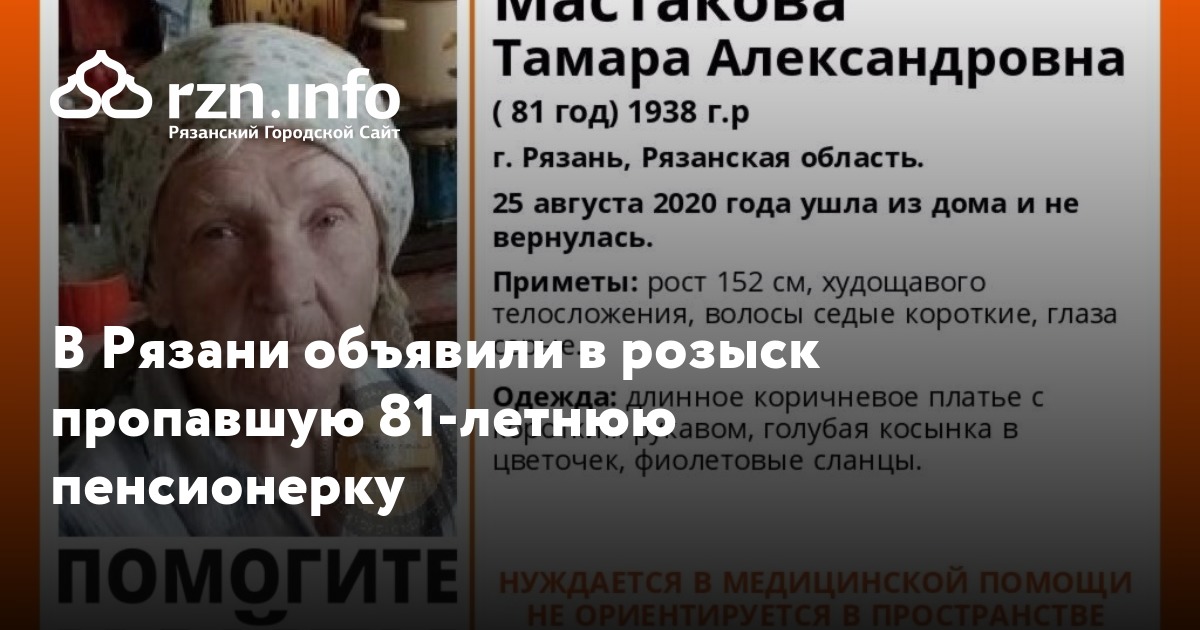 В Рязани объявили в розыск пропавшую 81-летнюю Тамару Мастакову, сообщили волонтеры ПСО «».