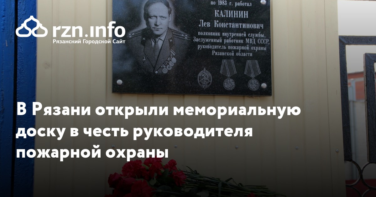 Во вторник, 25 августа, в Рязани открыли мемориальную доску в честь руководителя пожарной охраны Льва Калинина. Доска появилась на здании пожарной части №1.