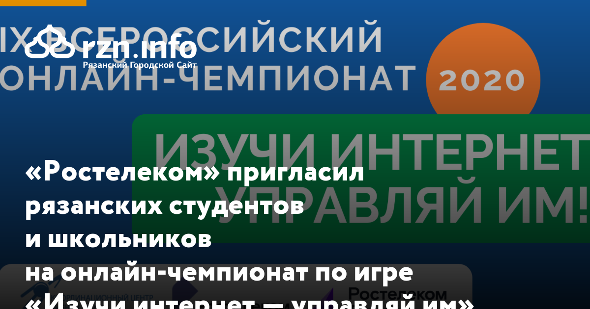 «Ростелеком» и Координационный центр доменов .RU/.РФ объявили о старте на IX Всероссийский онлайн-чемпионат по игре «». К участию приглашаются школьники и студенты до 18 лет. Регистрация продлится до 9 ноября 2020 года.