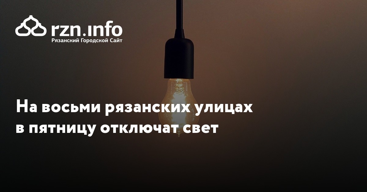 На восьми рязанских улицах в пятницу, 7 августа, отключат свет, сообщил горадминистрации.