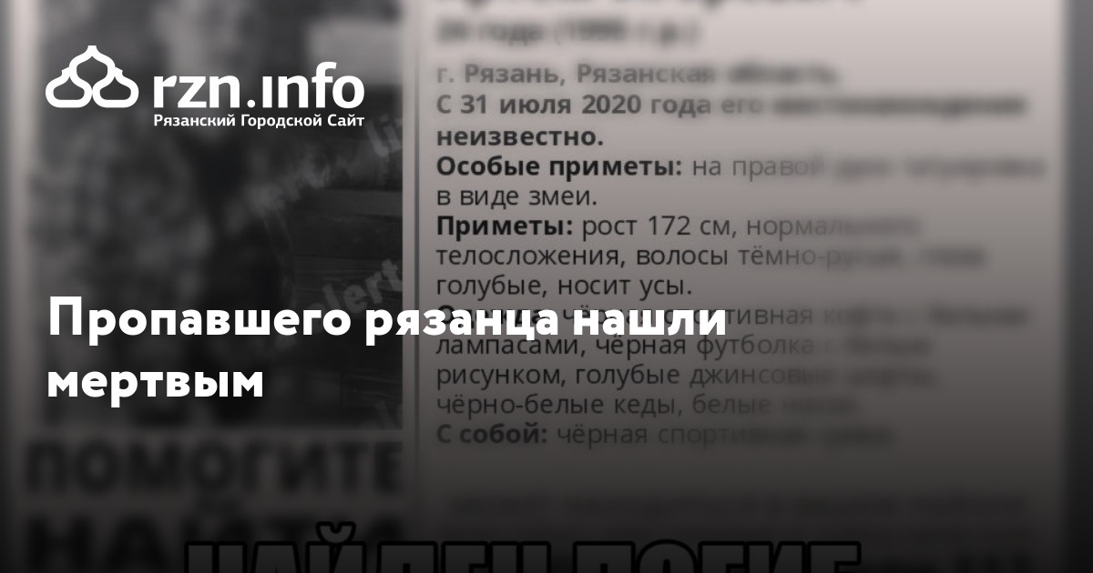 Пропавшего рязанца нашли мертвым