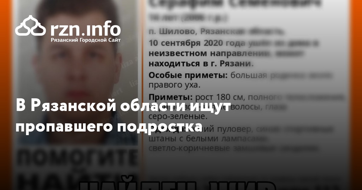 В Рязанской области в поселке Шилово ищут пропавшего 14-летнего Серафима Ефименко, сообщили ПСО «Лиза Алерт Рязань».