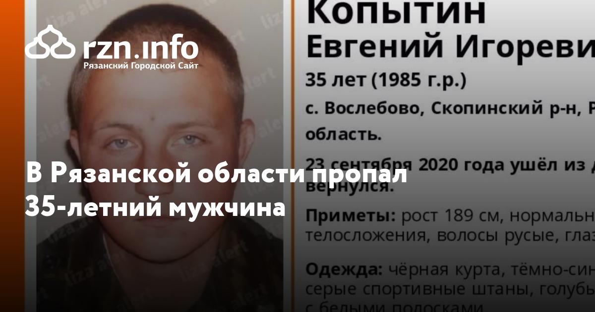 В Рязанской области в селе Вослебово Скопинского района пропал 35-летний Евгений Копытин, сообщили волонтеры ПСО «Лиза Алерт Рязань».