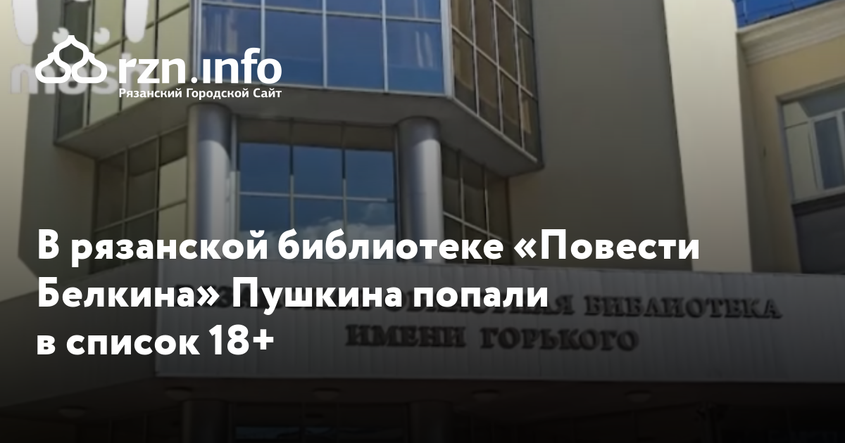 В рязанской областной библиотеке имени Максима Горького «Повести Белкина» Александра Пушкина попали в список 18+. Об этом в четверг, 3 сентября, сообщает Мash.