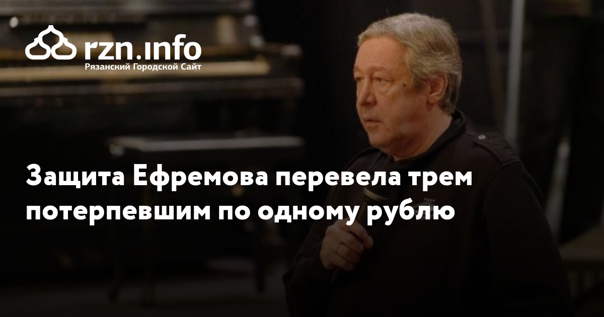 Защита Михаила Ефремова перевела трем потерпевшим компенсацию по одному рублю. Об этом в четверг, 3 сентября, заявил адвокат актера Эльман Пашаев, РИА Новости.