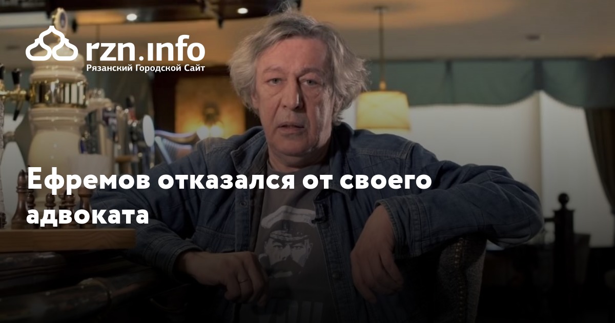 Михаил Ефремов отказался от своего адвоката Эльмана Пашаева. Об этом передает со ссылкой на члена Общественной наблюдательной комиссии (ОНК) Москвы Марину Литвинович.