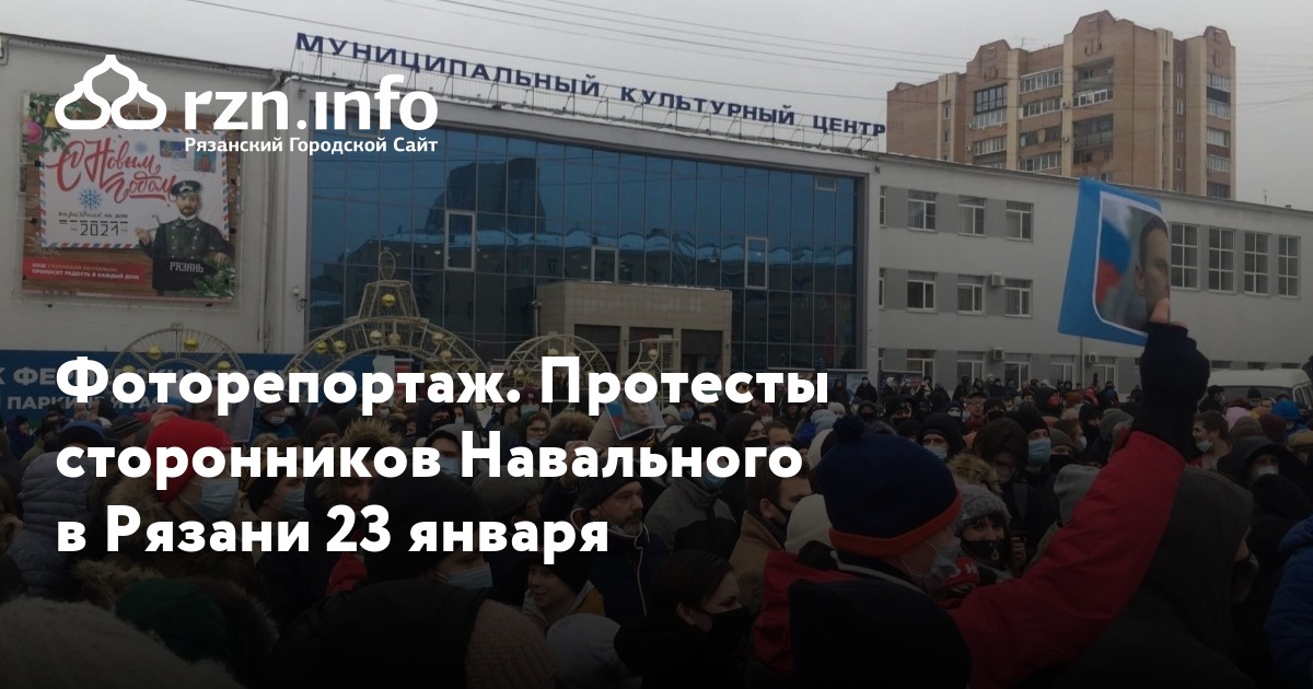 В Рязани акция протеста началась на площади Победы. Там днем собрались около 500 человек. Собравшиеся скандировали лозунги: «Мы за честный суд», «Свободу!», «Я против коррупции!». У некоторых в руках были портреты Навального. При этом на площади проиходила уборка снега и демонтаж елки, территорию огородили лентой.