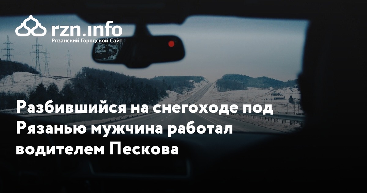 Мужчина, который 4 января насмерть разбился на снегоходе в Рыбновском районе, работал водителем Дмитрия Пескова — пресс-секретаря президента. Об этом РЗН. инфо сообщил собственный источник.