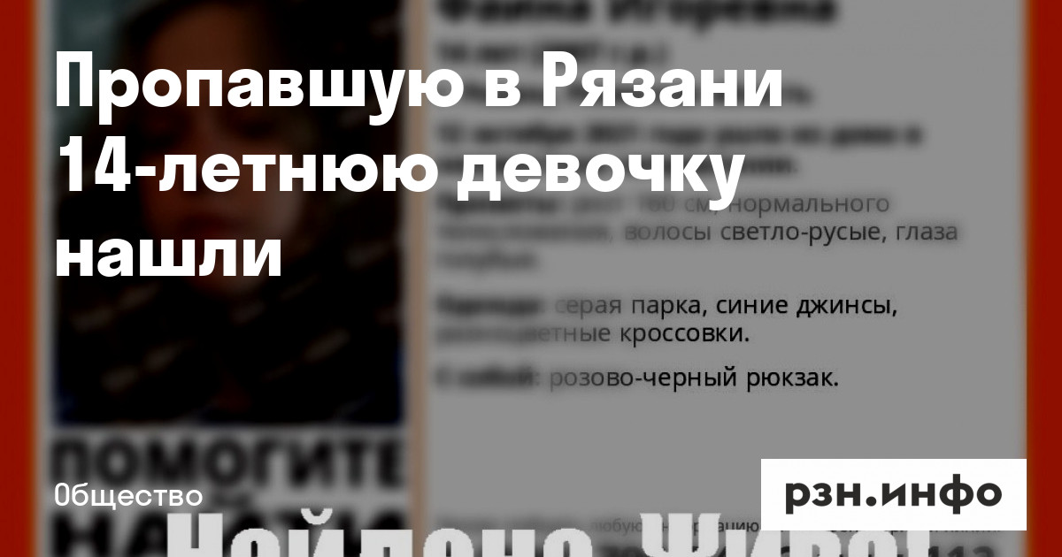 Пропавшую в Рязани 14-летнюю девочку нашли