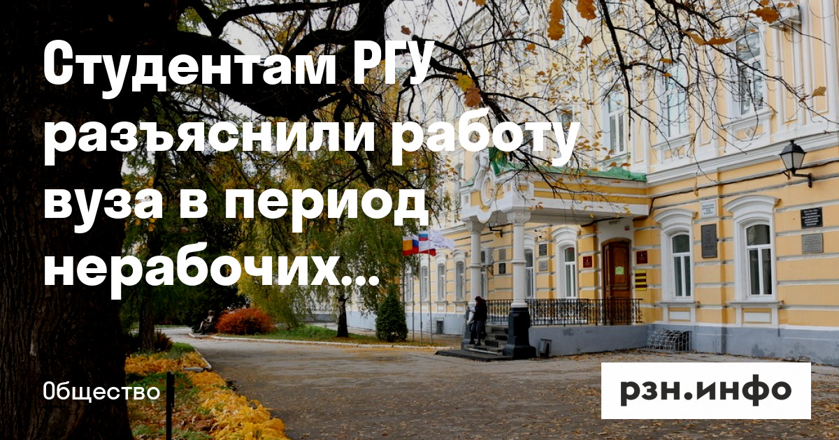 Руководство РГУ имени Есенина объяснило студентам, как будет проходить учебный процесс в период нерабочих дней с 30 октября по 7 ноября. Информация об этом в среду, 27 октября, появилась .