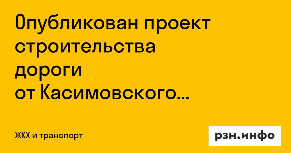 Опубликован проект строительства дороги от Касимовского до Муромского шоссе в Рязани